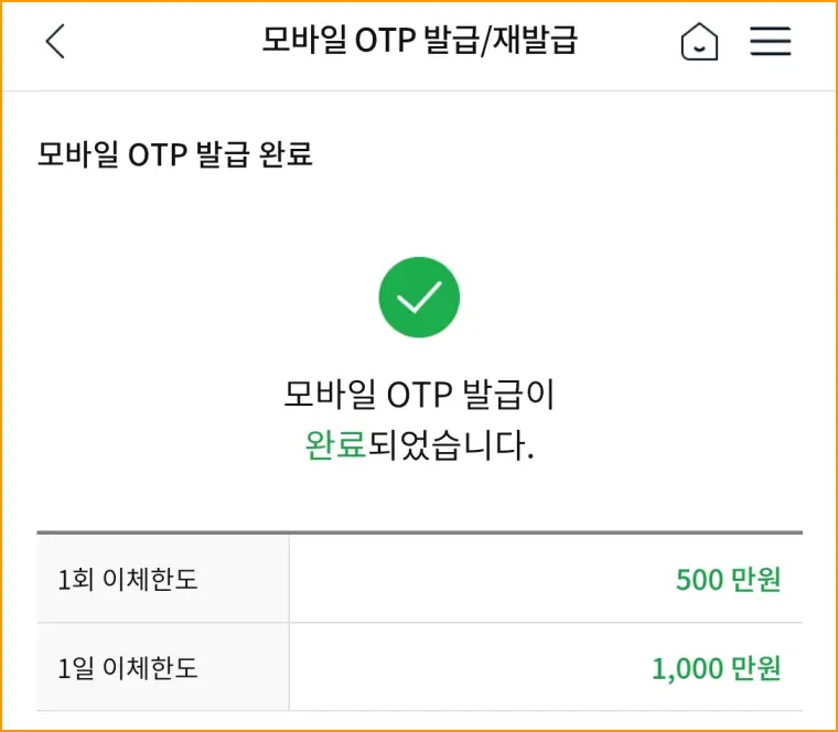 농협 모바일 OTP 발급 절차