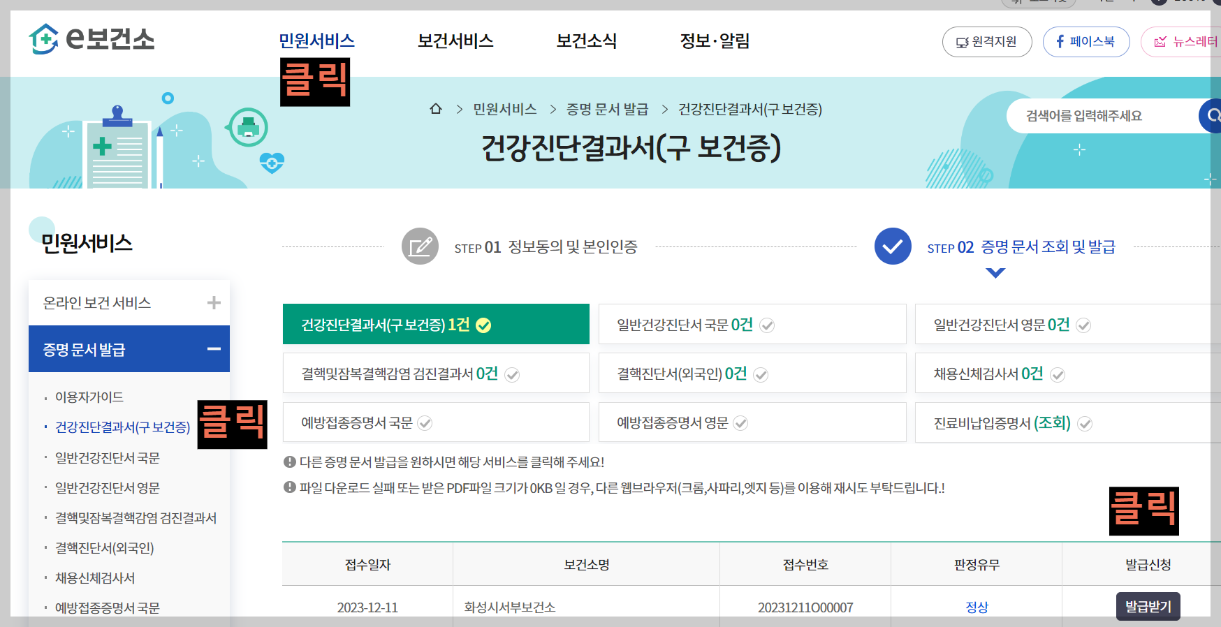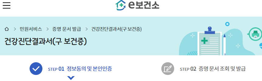 2단계: '건강진단결과서' 또는 '보건증' 검색