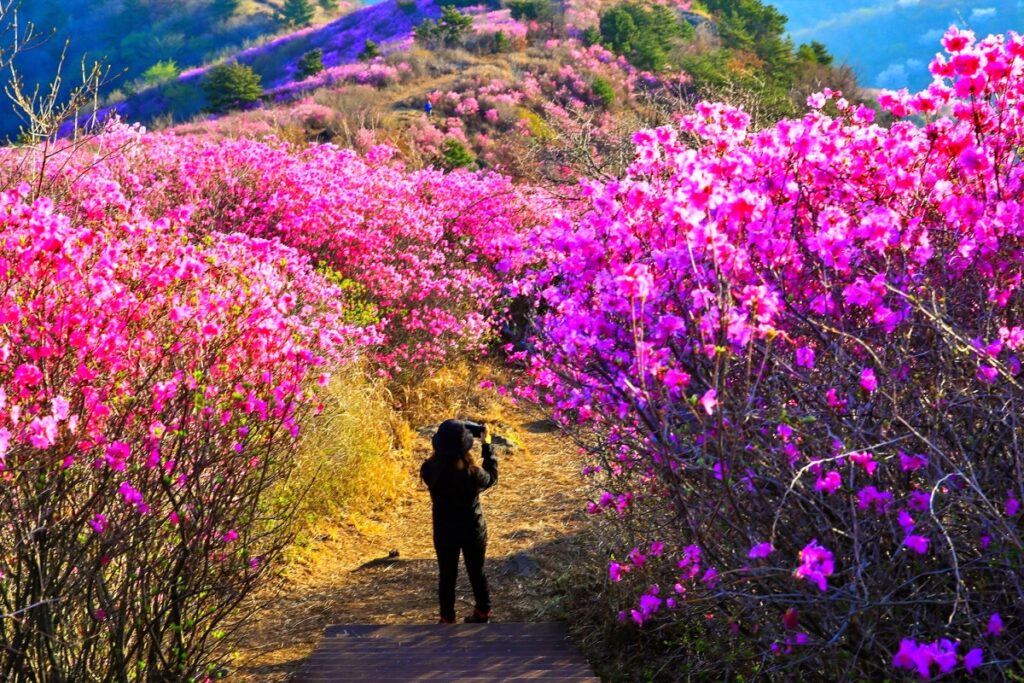특히 오후 3~5시 사이가 사진 촬영하기 가장 좋은 시간대이며, 흰색이나 파스텔톤의 의상을 착용하면 진달래와 더욱 조화로운 사진을 남길 수 있습니다.