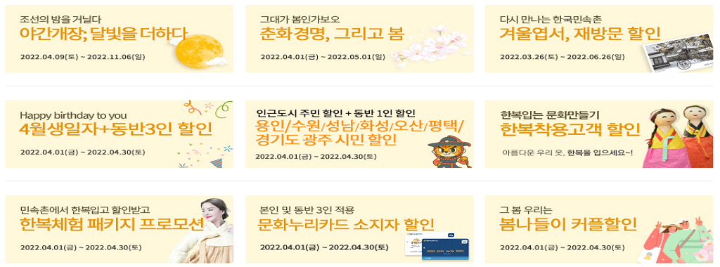 2024 용인 민속촌에서는 매월 특별한 할인 이벤트를 진행합니다. 방문 계획을 세우기 전 공식 홈페이지나 SNS를 통해 해당 월의 특별 할인 정보를 확인해보세요. 이를 통해 2024 용인 민속촌 할인 혜택을 최대한 활용할 수 있습니다.