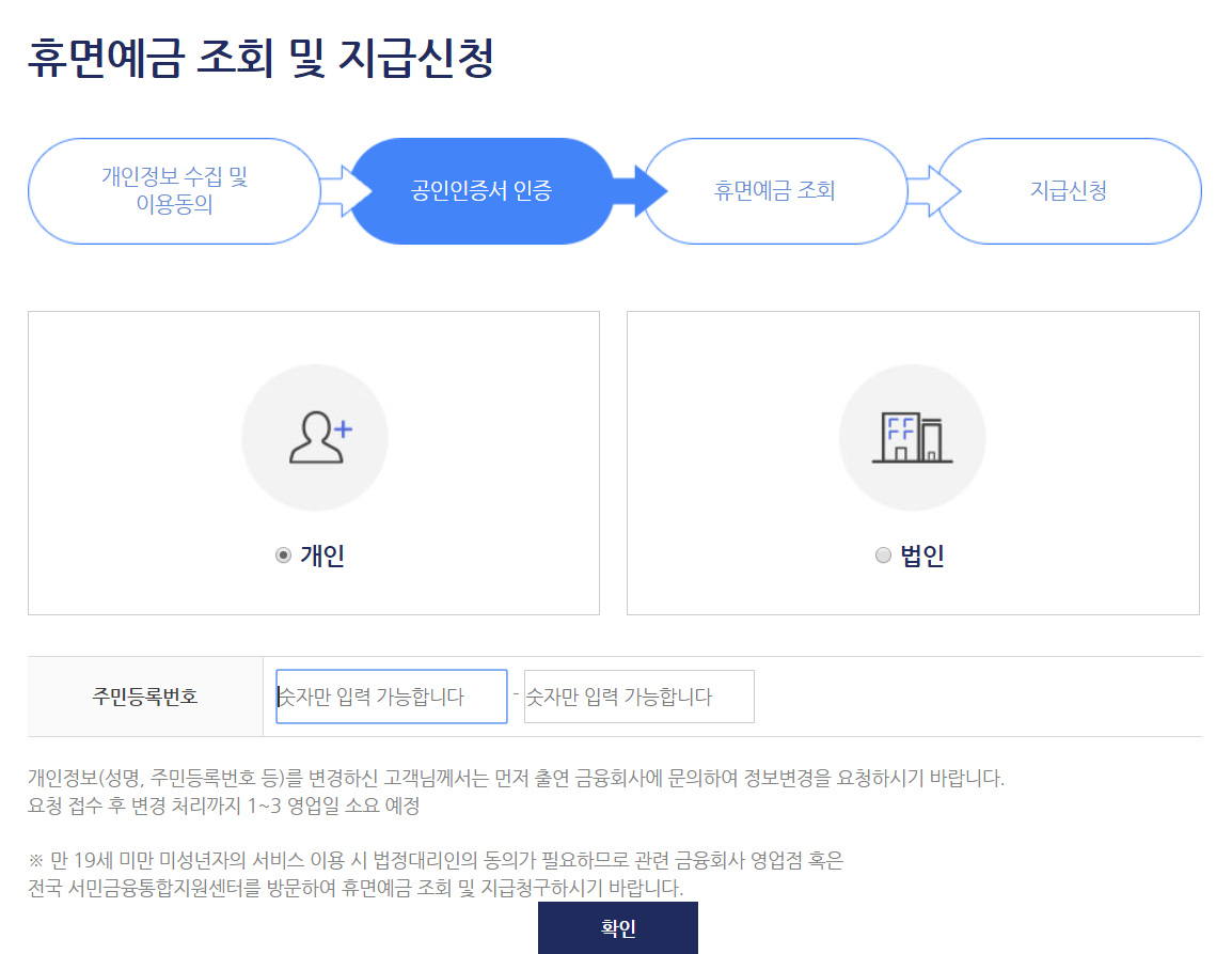- 휴면예금 찾기 서비스 선택